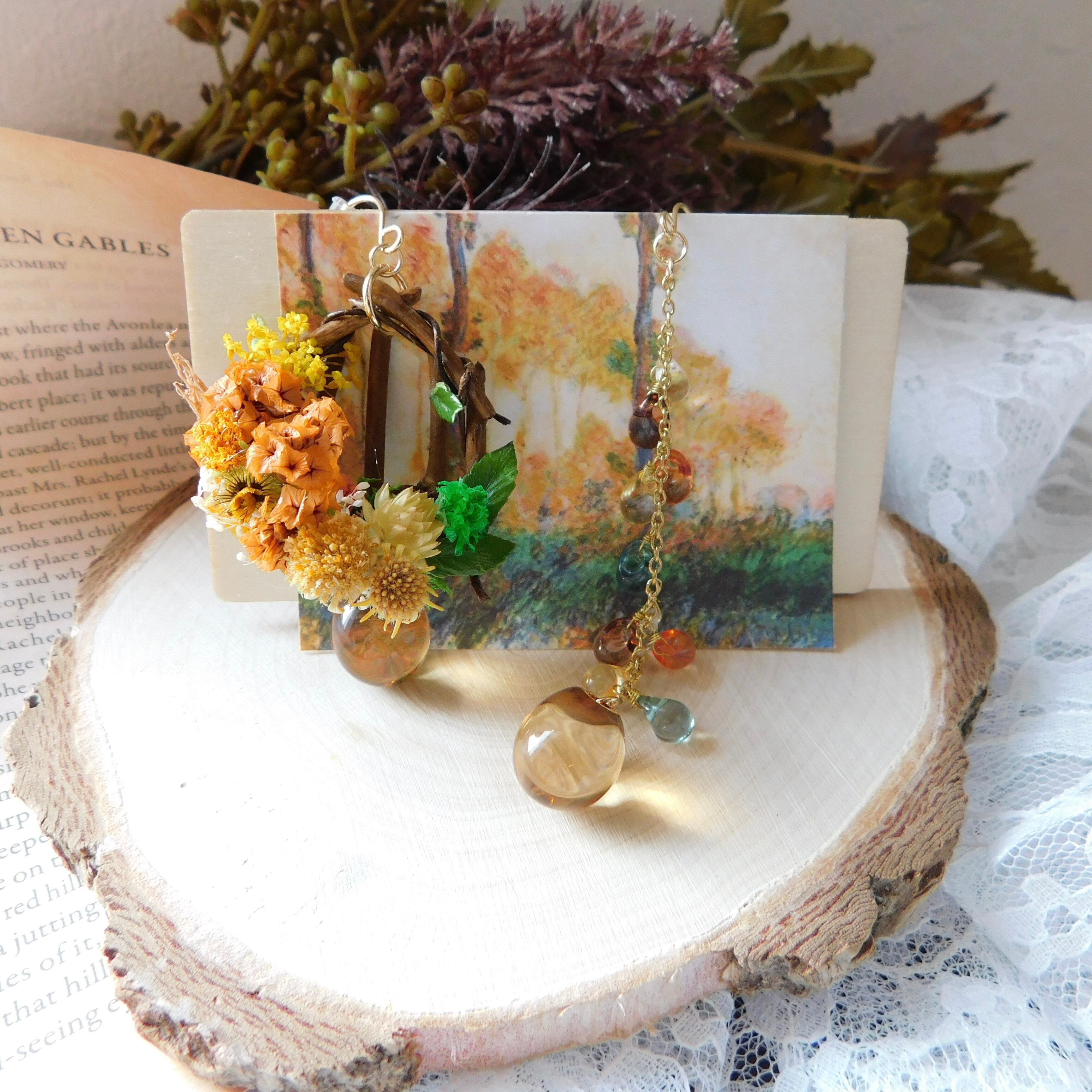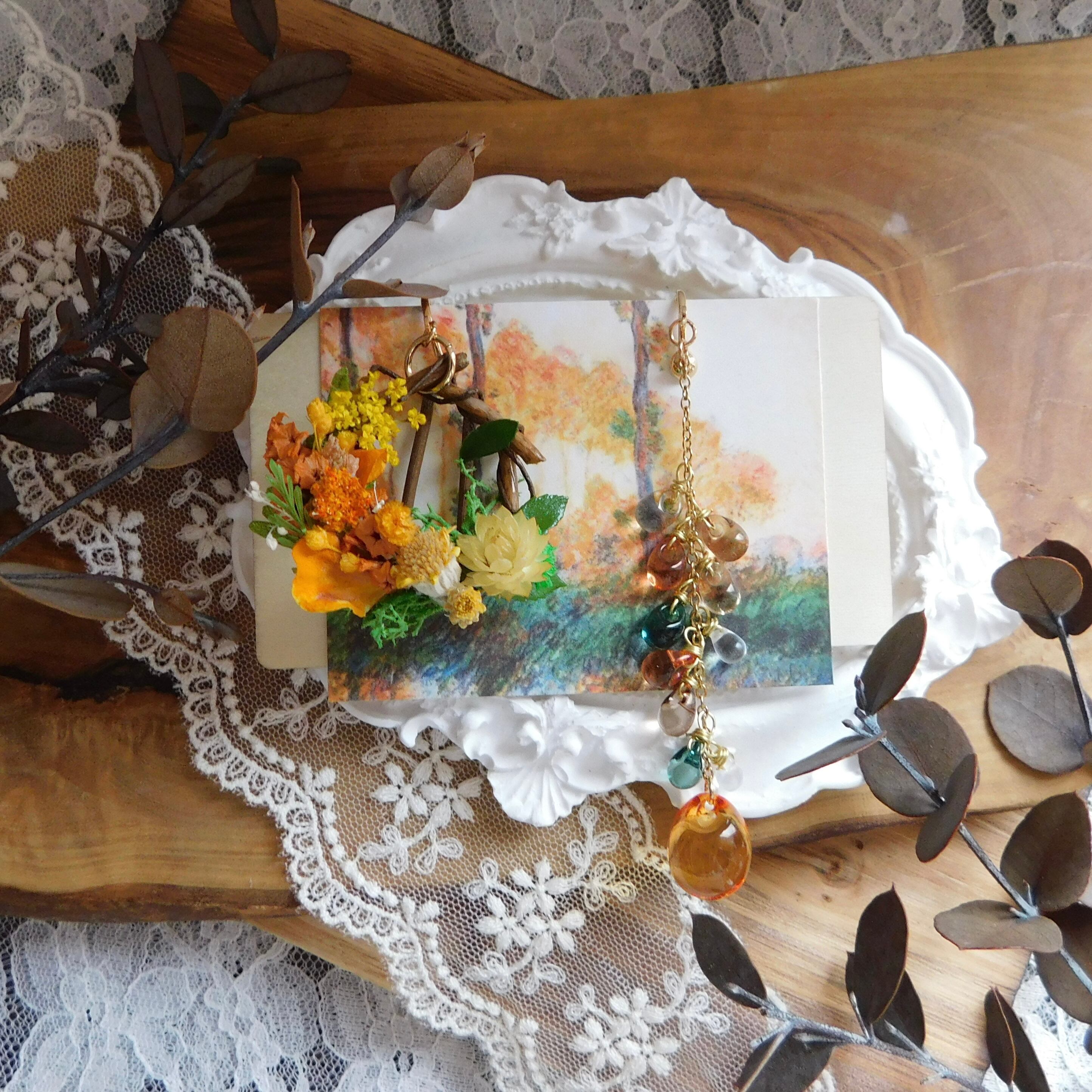 【生花風】絵画「ポプラ(秋)」リースピアス/イヤリング