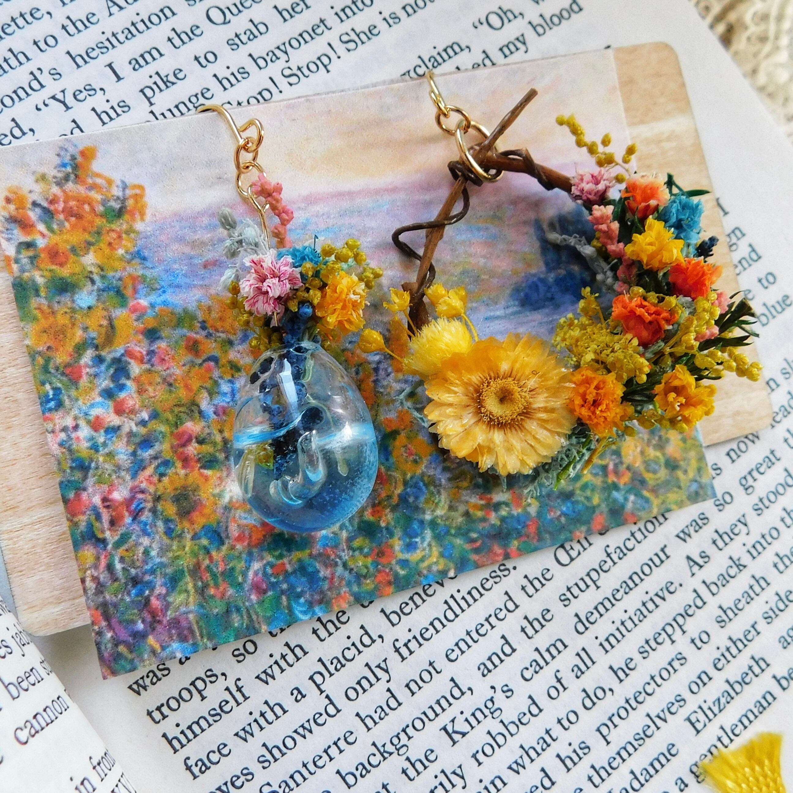 絵画「ヴェトゥイユの花壇」リースピアス/イヤリング