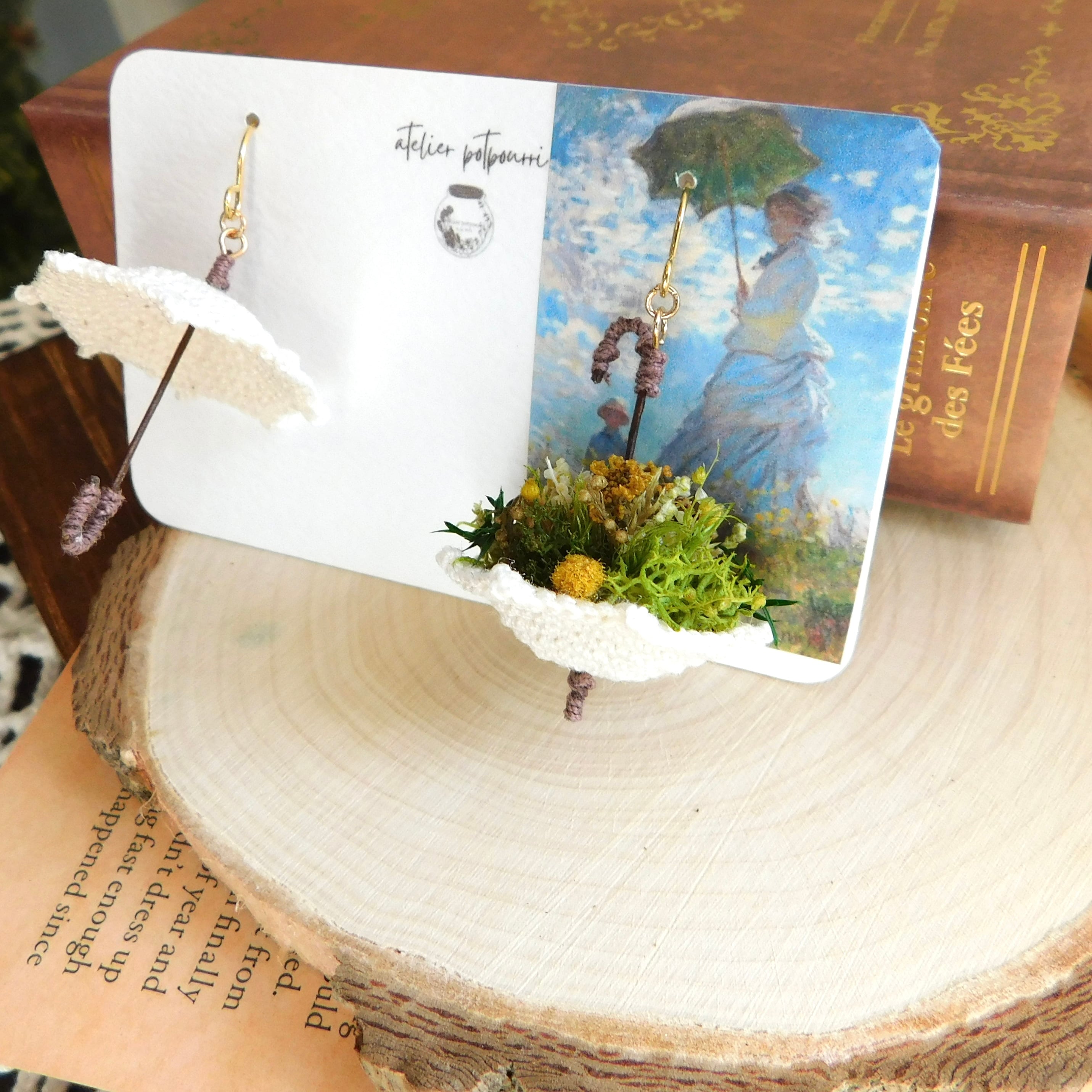 這款耳環/夾式耳環是以莫內的畫作《撐陽傘的女子》為靈感設計而成。