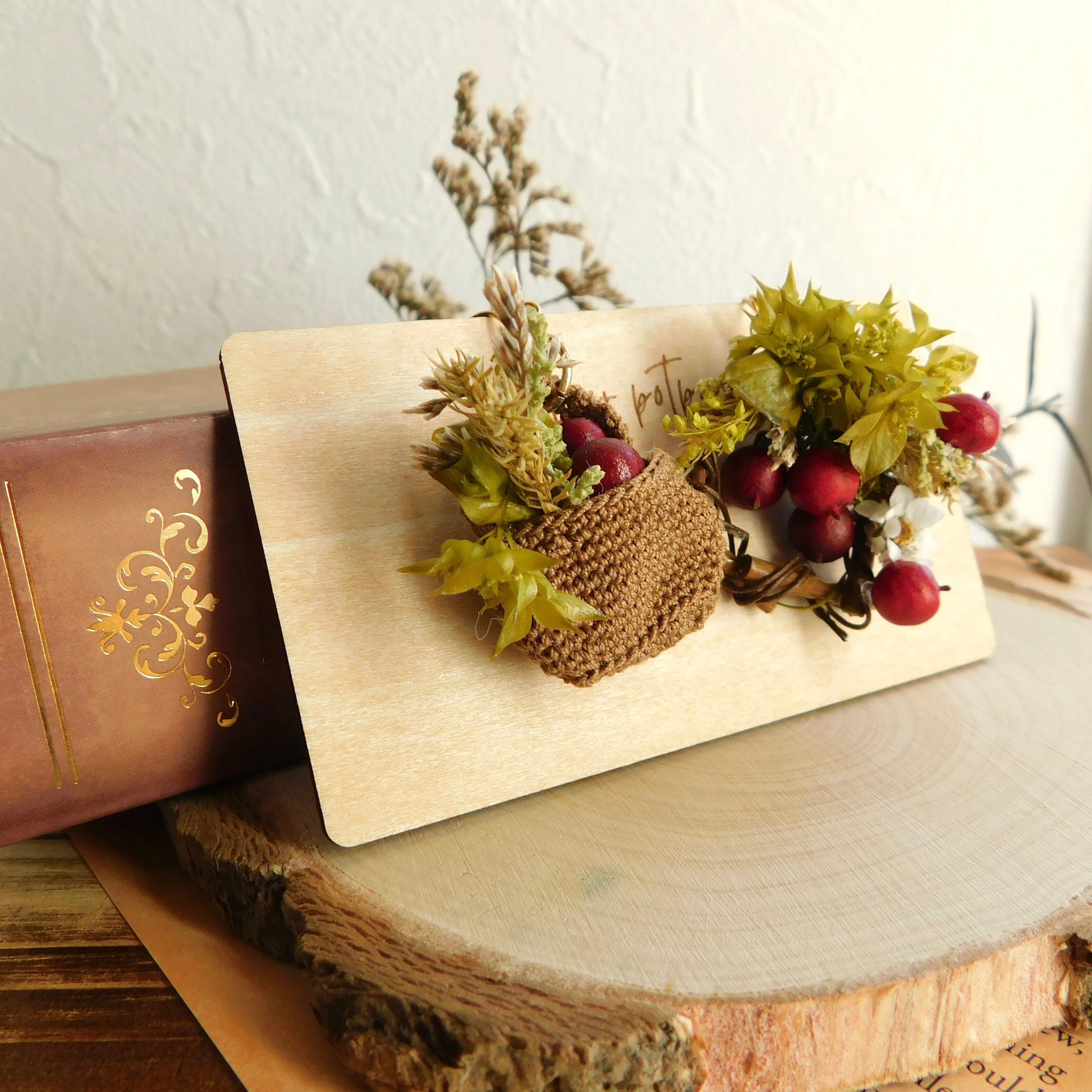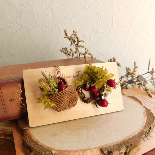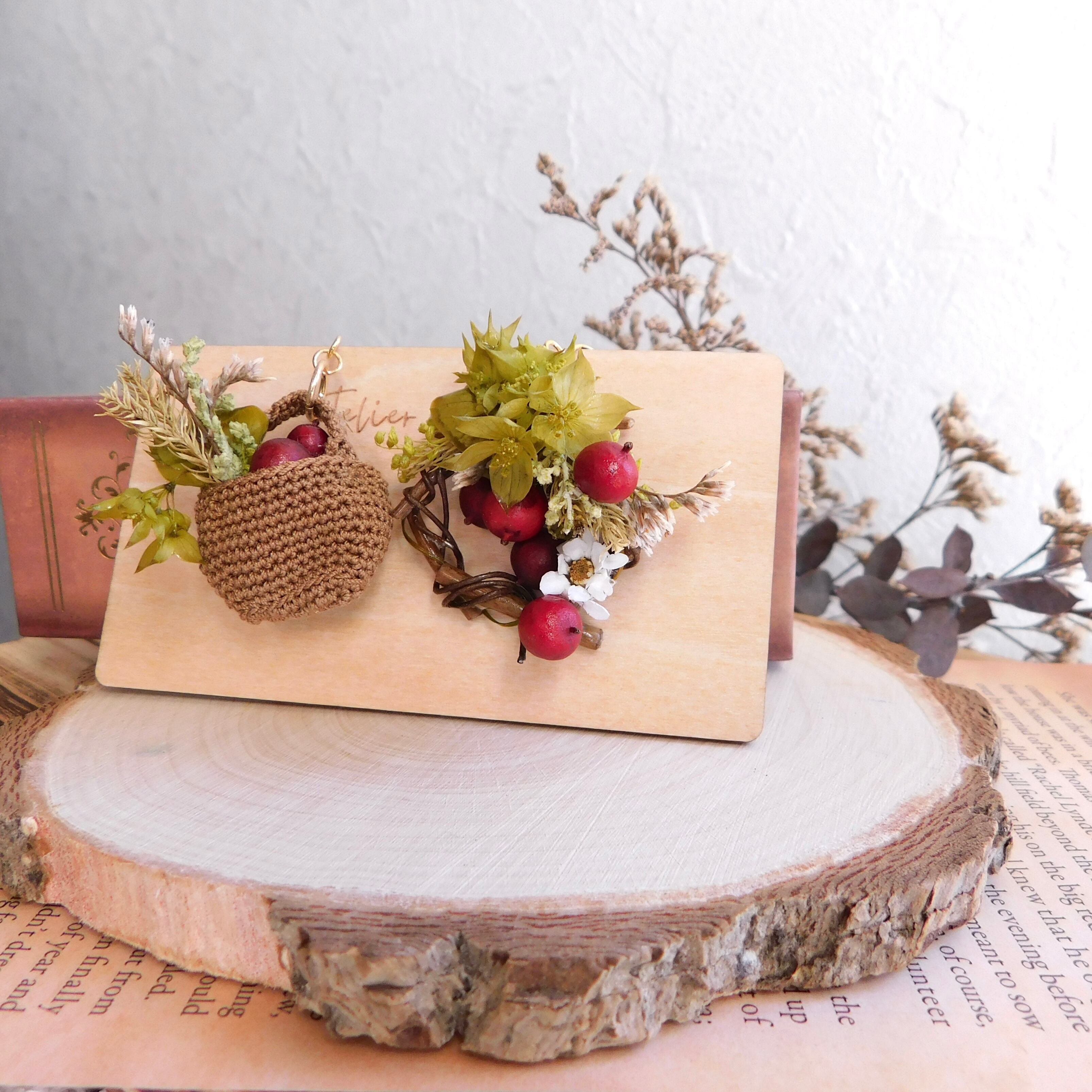 【生花風】ドライフラワーリース×カゴピアス/イヤリングりんご❀