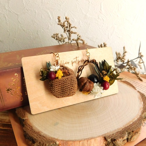 【生花風】ドライフラワーリース×カゴピアス/イヤリング木の実❀