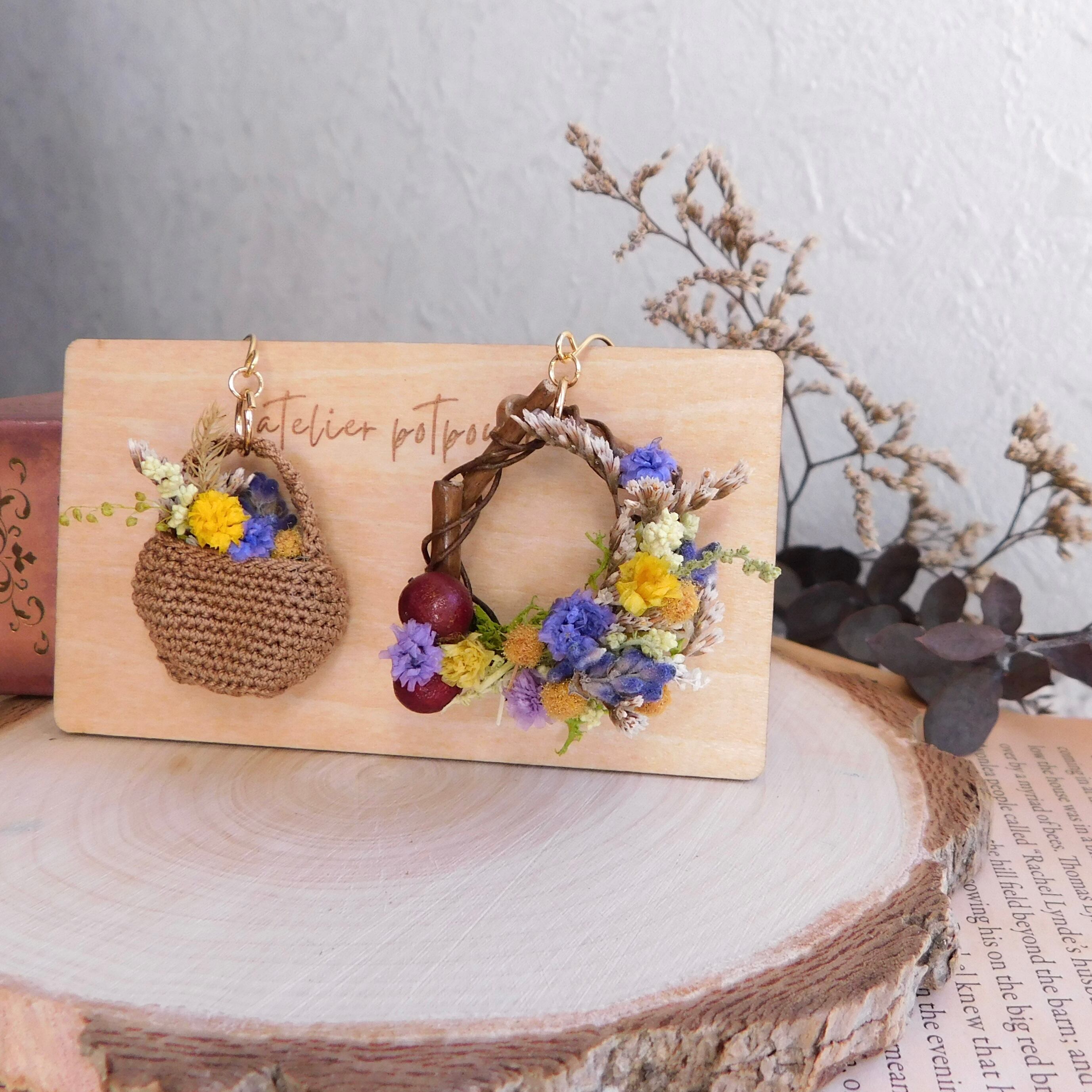 【生花風】ドライフラワーリース×カゴピアス/イヤリング❀