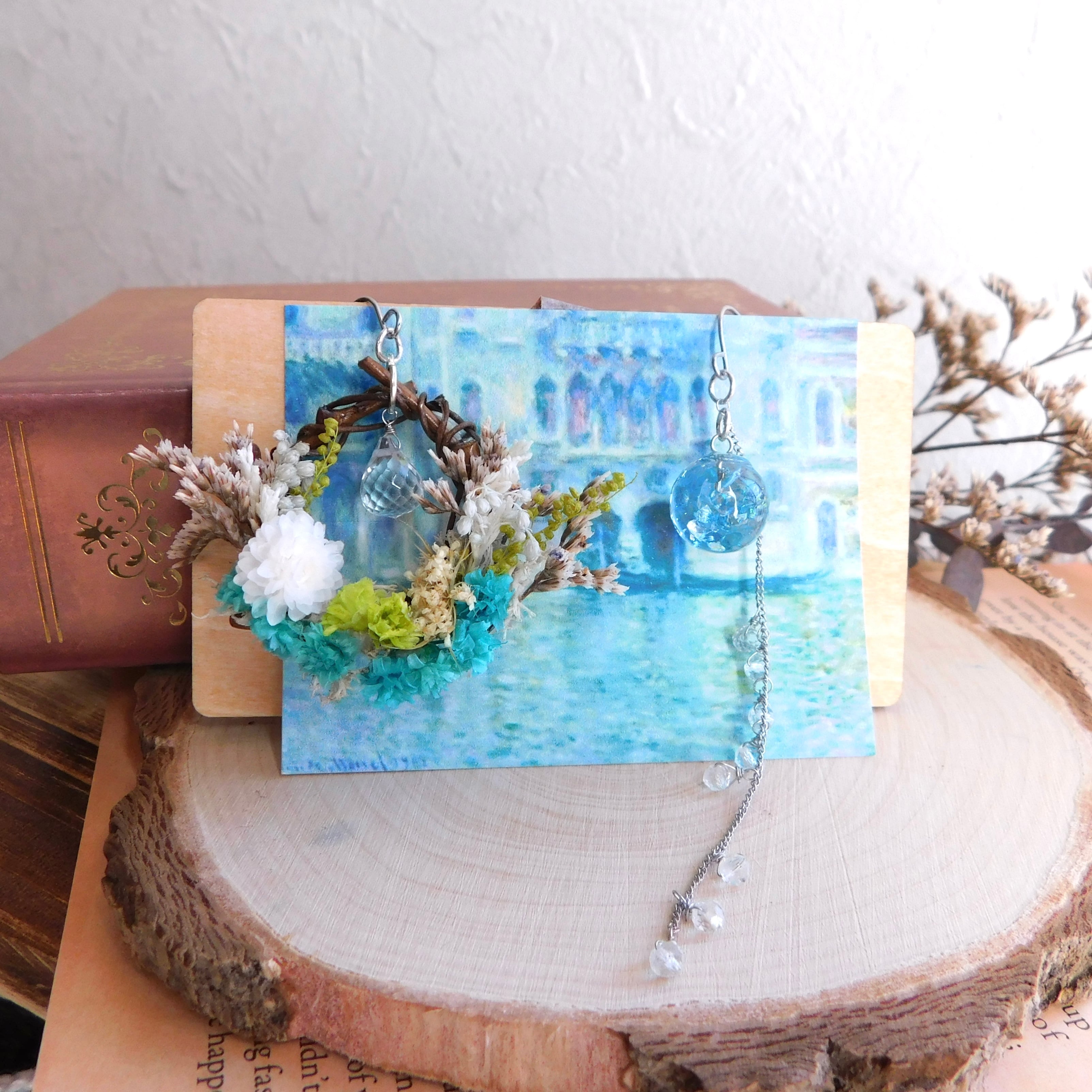 【生花風】絵画「ヴェニスのパラッツォ・ダ・ムーラ」リースピアス/イヤリング