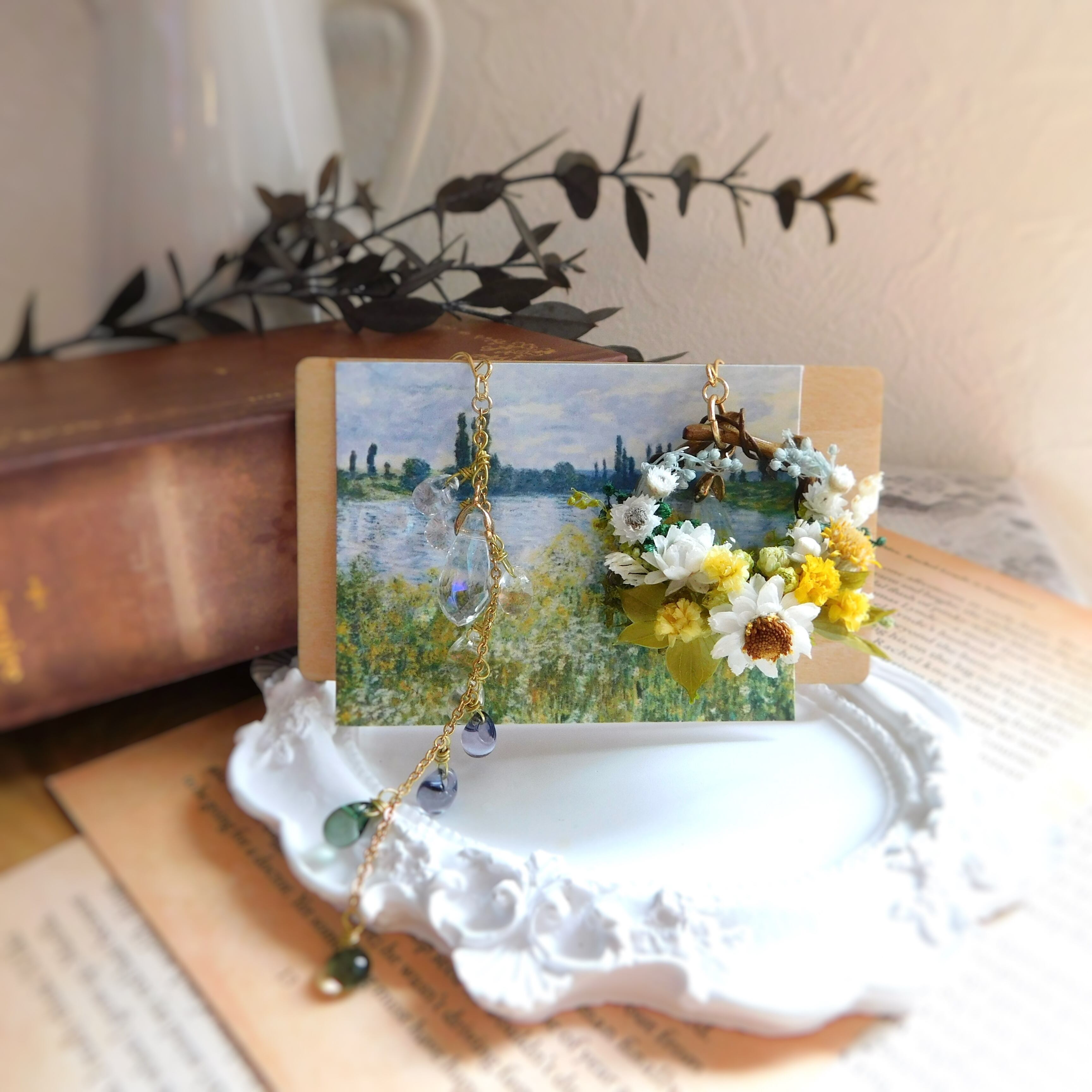 ドライフラワーのリースの中にモネの世界を